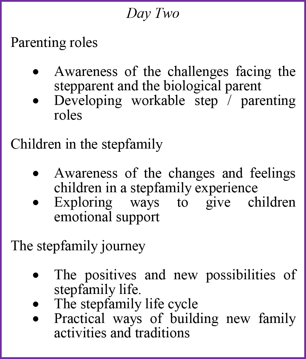 Making Stepfamilies work: Two day workshop for couples (starting August 2014)